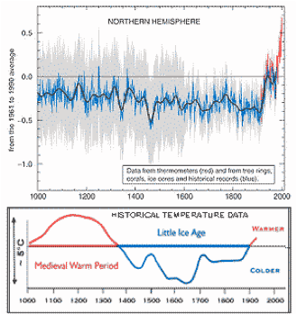 The graph above depicts averaged Northern Hemisphere temperatures over the last thousand years. More than that, in global climate reports particularly it's used as proof that mankind's industrial revolution has over the last hundred years started dangerously pushing up global temperatures, thus justifying restrictions on emissions of human produced greenhouse gasses. In this graph the historically documented temperature variations of the last millennium were flattened to a straight line due to statistical errors and improper calibration of the data right through to the 19 Century. Thermometer readings were not available for almost 850 of the 1,000 years.