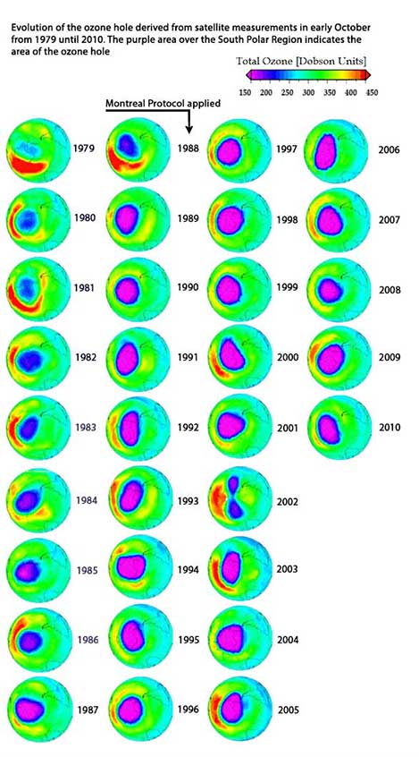 Soon after, there were first reports that the global effort was already showing results. Numerous publications pointed out that the ozone hole had already shrunk by 20 percent. A subsequent rebound was initially based on the grounds that certain variations were not atypical, but the problem would be fully resolved by the year 2007.
