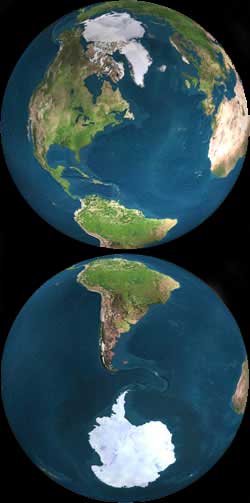 The ice sheets of Antarctica (South Pole) and Greenland, represents approximately 99.5% of the total ice sheet surface of the earth. The Arctic ice is floating sea ice on the Arctic Ocean in contrast to