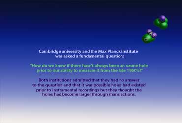 The ozone hole over the Antarctic, contrary to expectations, did not shrink in recent times, but was in the years 2006 to 2008 at times even greater than in the 1990's. New scientific evidence suggests that the long-time used theories about the causes of Ozone layer destruction were totally incomplete and may be only slightly relevant. Therefore one of the few environmental success stories of banning CFS was shaken to the ground. The natural ozone layer of our planet is protecting life on earth from aggressive, ultraviolet radiation of the sun. Ozone, a variant of the tri-atomic oxygen, has the effect that 'hard' radiation, high-energy electromagnetic radiation, is prevented from penetrating freely to the surface already in the lower stratosphere. A reduction of the natural ozone in 10 to 30